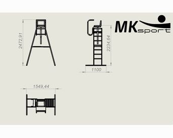 Главное преимущество данной модели состоит в возможности регулировки положения судейского места. Кресло можно установить на высоте 2150, 2350, 2550 мм от уровня земли. Расширенная рама у основания вышки, а также широкая постановка опор гарантируют устойчивость конструкции. Металлический каркас изделия обработан цинкосодержащим грунтом и порошковой полимерной краской.
